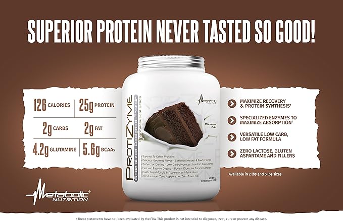 - Protizyme from the house of Metabolic Nutrition is a 100% whey blend Specially Designed Protein. NO Gluten, No GMO’s, No Lactose, NO Soy Protein, NO Added-Sugar, NO Trans Fat, NO Aspartame, NO Fillers, NO Preservatives, NO Additives, NO Amino Spiking, NO Illegal Substances and NO Gimmicks