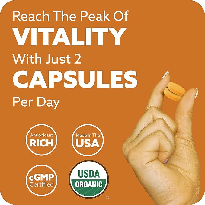 - USDA Certified Organic Turmeric with Curcuminoids – Our formula combines organic turmeric root and turmeric extract, standardized to 95% curcuminoids for powerful support in every tablet. Each serving provides a potent dose of curcuminoids to promote overall wellness.
