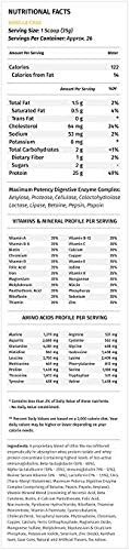 - 10x-microfiltered enzymatically whey protein isolate and whey protein concentrate which delivers 24g – 26g Protein, Very Low Sugar: 1g, Very Low Fat: 1.5g, Low Sodium, Low Cholesterol, and Low Calories: 122 calories per serving. Each serving also contains 5.6 grams of BCAA’s & 4.2 grams of L-Glutamine.