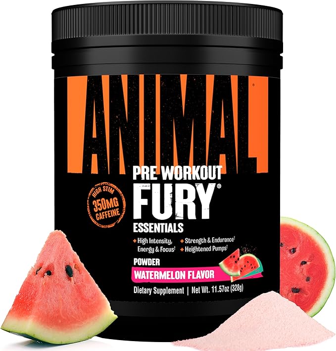 Animal Fury Pre Workout Powder - Energy and Focus Supplement with 5g BCAA, 350mg Caffeine Nitric Oxide Booster with Beta-Alanine, Preworkout for Men and Women, Watermelon Flavor, 20 Servings