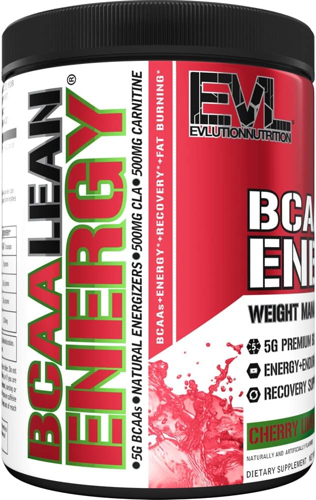 EVL BCAA Lean Energy Powder - Pre Workout Green Tea Fat Burner Support with BCAAs Amino Acids and Clean Energizers - BCAA Powder Post Workout Recovery Drink for Lean Muscle Recovery - Cherry Limeade