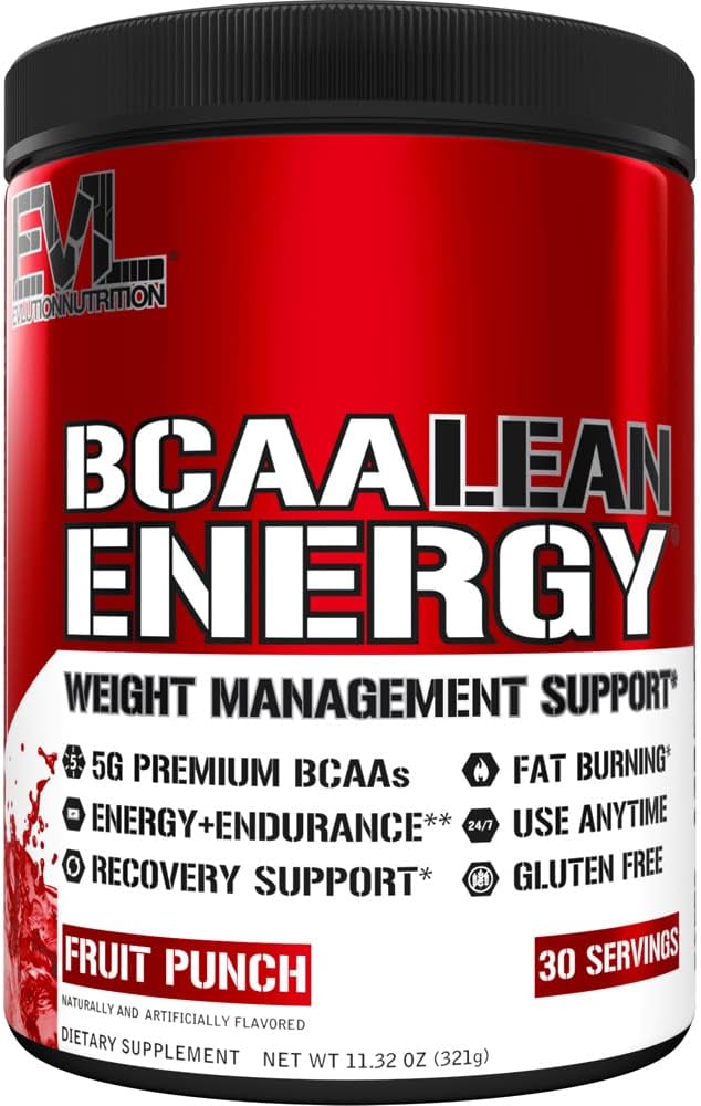 EVL BCAA Lean Energy Powder - Pre Workout Green Tea Fat Burner Support with BCAAs Amino Acids and Clean Energizers - BCAA Powder Post Workout Recovery Drink for Lean Muscle Recovery - Fruit Punch