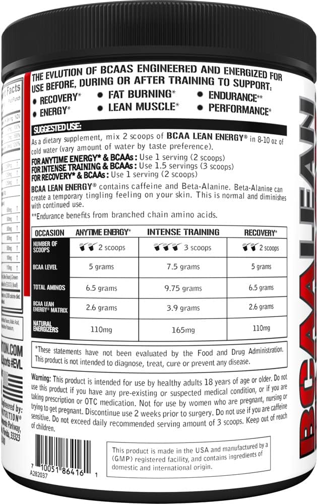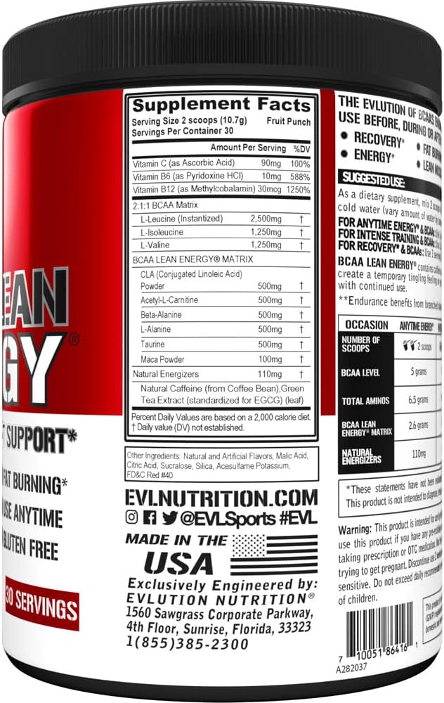 - Uncompromising Quality - Choose EVL and our BCAA Lean Energy powder with carefully chosen ingredients like L-alanine CLA and Maca root to give you the edge you need with sustainable energy and focus