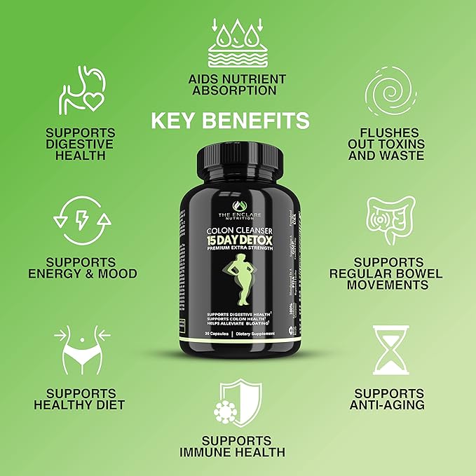- ✅ JUMPSTART YOUR HEALTHY DIET WITH A SUPER COLON CLEANSE AND BODY DETOX. We Carry About 25lbs Of Waste In Our Intestines. Let Enclare 15 Day Colon Detox And Cleanser Colon Broom Clean Your Gut. Add Bowel Cleanse To Any Dieting Program. A Clean And Healthy Digestive System Enables Fast Reduction of Waste For Women & Men, Reduces Excess Belly Fat, Water Weight, & Boost Healthy Metabolism. Pair Enclare Detox With Enclare Diet Pills That Works Fast, Stamina, Forskolin, A6burn, Immunity &, Mushroom.