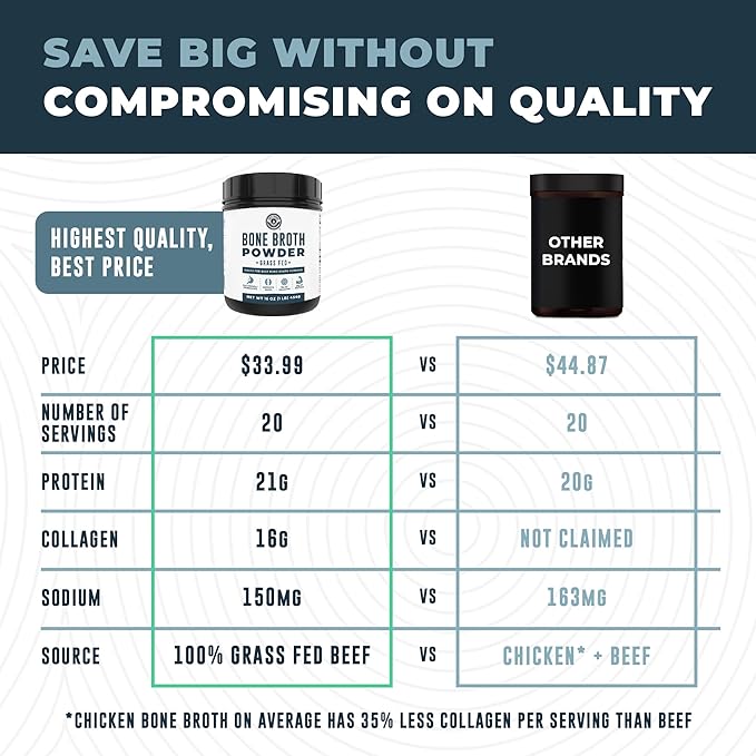 - High Quality Beef Bone Broth Powder: Our Beef Bone Broth Protein Powder is manufactured at a GMP facility. We stand apart from other companies by ensuring that each batch is created using a low-heat, time consuming process. Plus, it's tested also third party tested, meaning that we only deliver high quality, nutritious bone broth protein powder that meets our mile-high standards. Comes in our BPA Free, Food Grade PET Plastic Container.