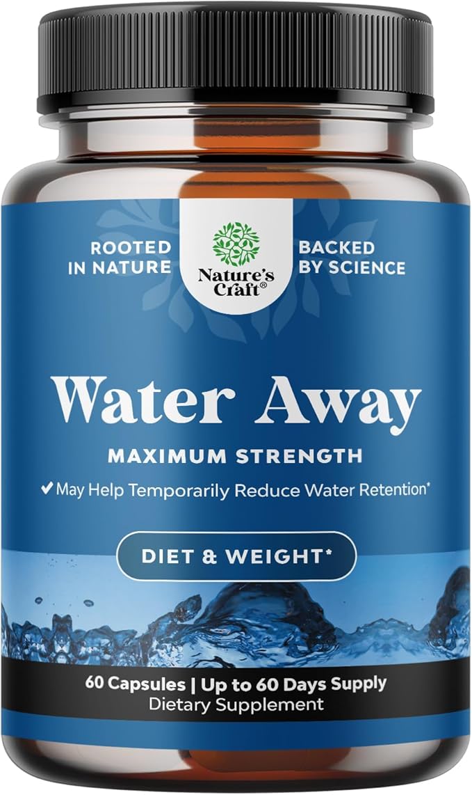 Water Away Pills Maximum Strength - Herbal Diuretic Pills for Water Retention for Fast Acting Bloating Relief for Women and Men - Easy To Take Water Retention Pills for Women and Men - 60 Servings