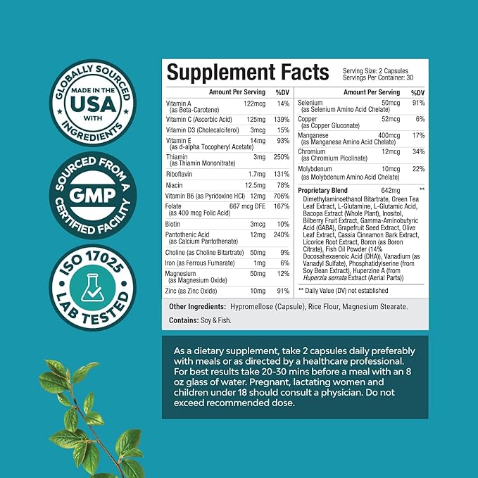 - Nootropics Brain Support Supplement - Try our brain booster for cognitive performance with a unique blend of brain vitamins for memory and brain focus including Huperzine A DMAE and Bacopa monnieri