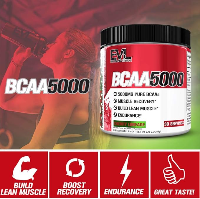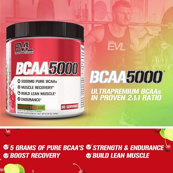Evlution EVL BCAAs Amino Acids Powder - BCAA Powder Post Workout Recovery Drink and Stim Free Pre Workout Energy Drink Powder - 5g Branched Chain Amino Acids Supplement for Men - Cherry Limeade
