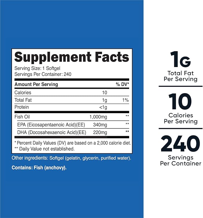 - 240 Fish Oil Softgels Per Bottle (240 Servings)