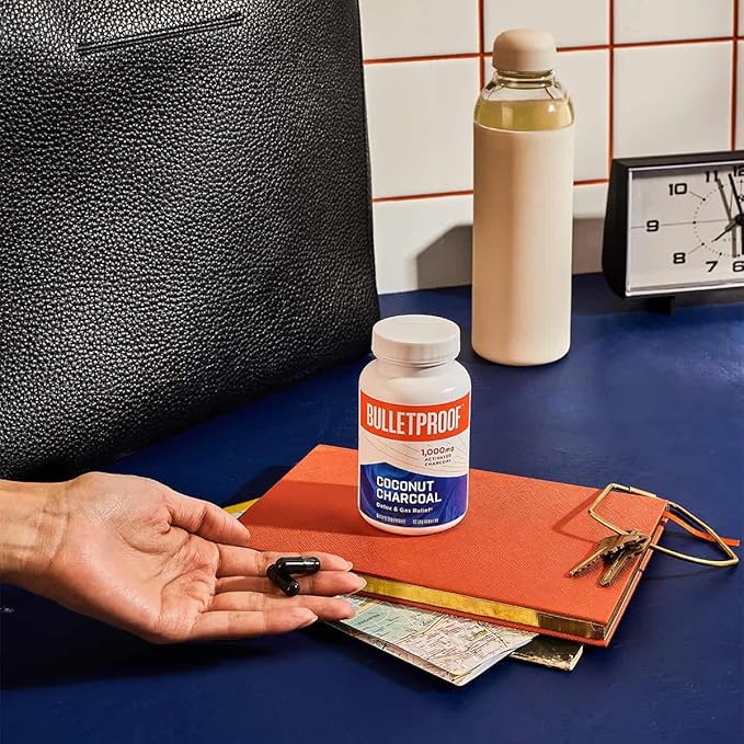 - Contains one 90-count bottle of Bulletproof Coconut Charcoal detox and gas relief capsules