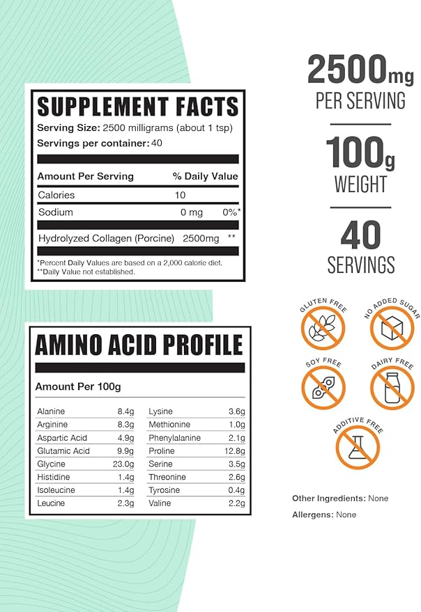 - Optimized in every Serving: Our Porcine Collagen powder, a Hydrolyzed Collagen powder, is unflavored and free of unnecessary allergens, offering you a high-quality product that easily integrates with other supplements or your preferred shake or beverage.
