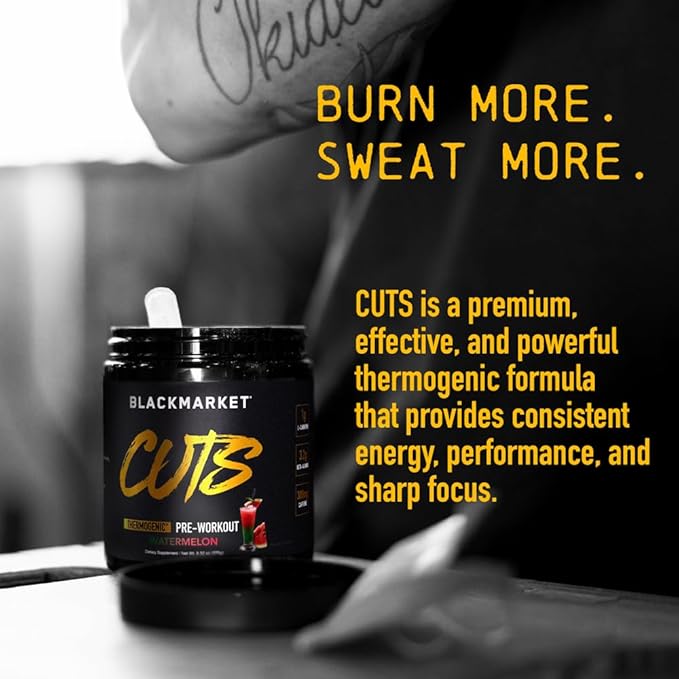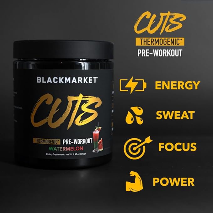 BLACKMARKET CUTS Pre Workout - Flavored Energy Powdered Drink Mix for Men & Women, Great for Muscle Definition, Thermogenic, Creatine Free (Watermelon, 30 Servings)