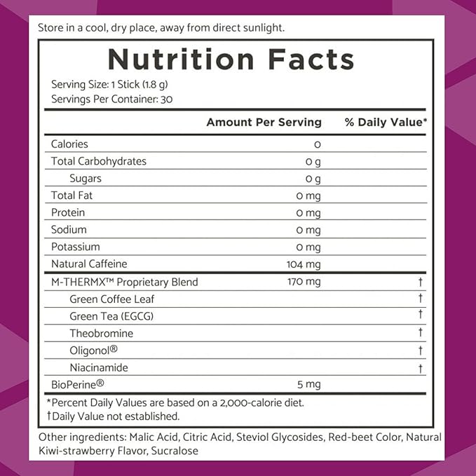 Official Trim Stiks - Kiwi-Strawberry - Support Energy & Focus with Mood Boost - Bioperine & Theobromine Energy Powder - Appetite Support (30 Sticks)