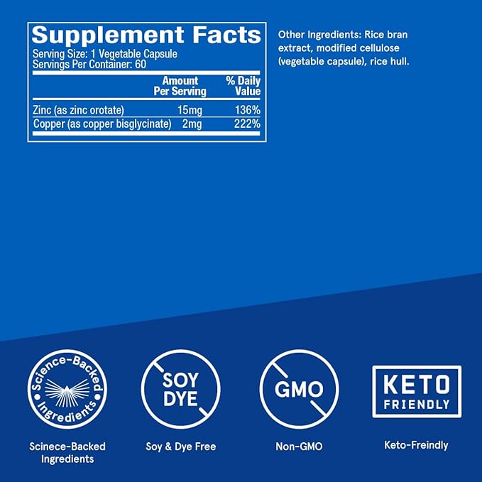 - This zinc supplement with copper provides balanced doses of both essential minerals in one convenient capsule