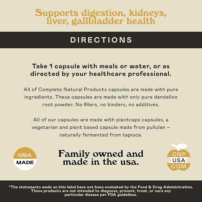 - A GREAT CLEANSE: If You're Looking To Use Dandelion Root As A Kidney Cleanse, Liver Cleanse Or Whole Body Cleanse, To Soothe Upset Stomach Or As An Anti-Inflammatory Support, Complete Natural Products Pure Dandelion Root Capsules Is The Product To Choose! It's 100% Natural With No Unnecessary Additives, Fillers Or Flavors.