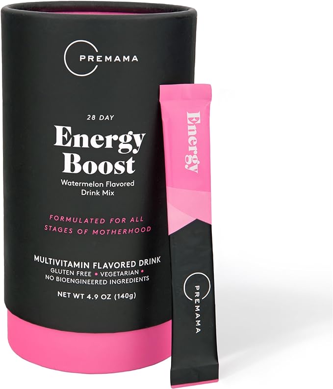 Premama Energy Boost For All Pregnancy Stages, Caffeine-Free, Stimulant-Free Energy, Gluten-Free, Vegetarian, Watermelon Flavor, 28 Single Serve Packets