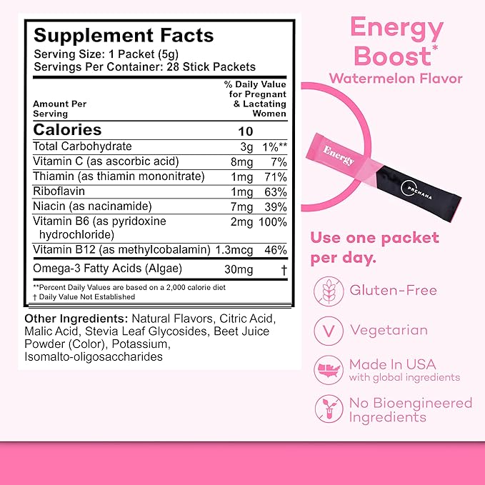 - MULTIVITAMIN SUPPLEMENT: Our delicious watermelon flavored powder packets are packed with B vitamins that help support mom’s energy level