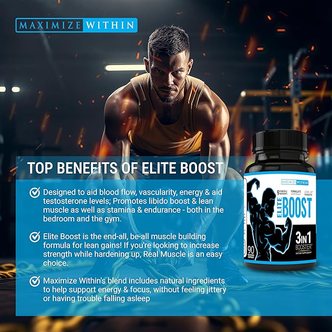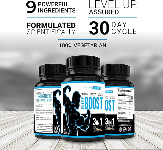 - 3-IN-1 BOOST. Get the Elite Boost advantage! This one-of-a-kind formula includes powerful boosters formulated to combat feelings of lethargy and loss of muscle mass, and promote improved stamina