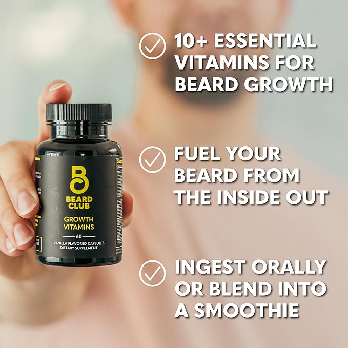 The Beard Club - Beard Growth Vitamins - Support A Thicker Fuller Beard, Fill in Patches - Biotin, Minerals, Multi-Vitamins Help Support and Stimulate Healthier Facial Hair Growth