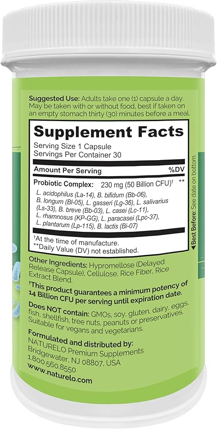- EFFECTIVE DELIVERY: NATURELO Probiotics are formulated in delayed-release capsules, a method that aids the survival of live probiotics and their effective delivery to the gut. This special delayed action protects lactobacillus and bifidobacterium from the acidic environment in the stomach.