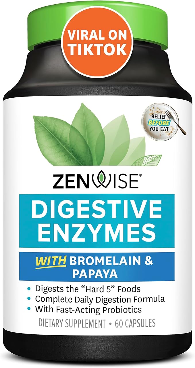Zenwise Health Digestive Enzymes for Gut Health - Probiotic Multi Enzymes with Prebiotics and Probiotics for Women and Men for Digestive Health and Bloating Relief, Daily Enzymes for Digestion -60 CT