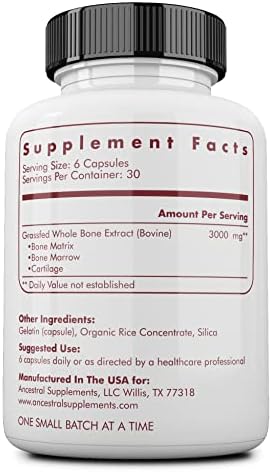- NEW ZEALAND AND AUSTRALIAN GRASS FED BEEF: Made in small batches in the USA without GMOs, fillers, or flow agents and third party verified for purity, Ancestral Supplements' bone marrow capsules are sourced from 100% grass-fed cows, pasture raised without hormones in green fields.