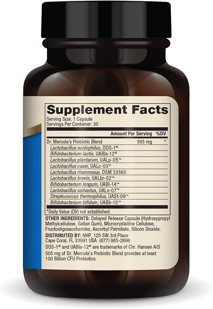 Dr. Mercola Complete Probiotics, 30 Servings (30 Capsules), 100 Billion CFU, Dietary Supplement, Digestive & Immune Support, Non-GMO