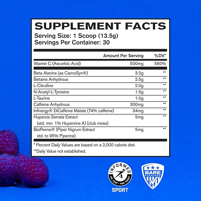 - Special Ingredients : Infinergy (di-caffeine malate), Betaine Anhydrous, N-Acetyl Tyrosine