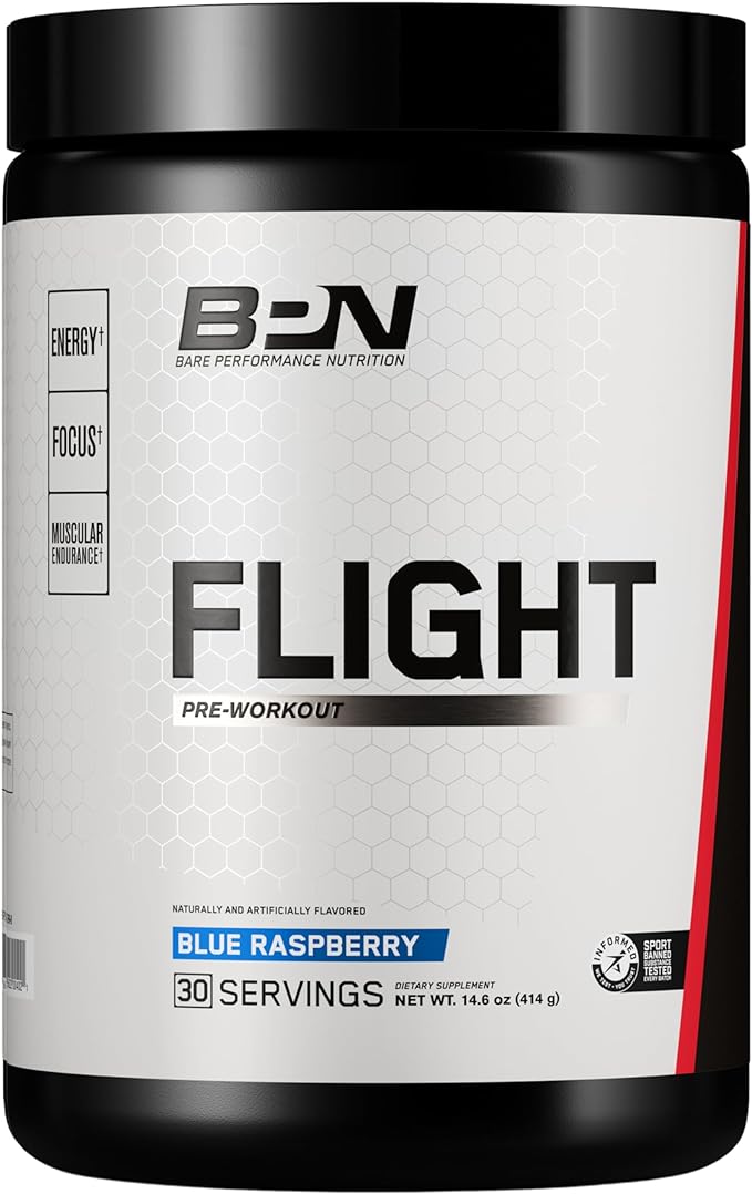 - BPN FLIGHT PRE WORKOUT: Flight is our powerful pre-workout supplement created to boost your power output, improve focus and increase your energy, without the crash or jitters. Prepare for the best workouts of your life! Blue Raspberry - 30 Servings