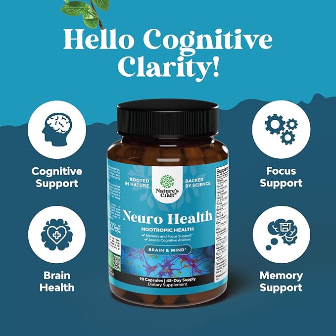 - Neuro Health Brain and Focus Formula - Our nootropic supplement contains a holistic blend of brain focus vitamins for adults with minerals and herbal extracts to optimize your cognitive abilities