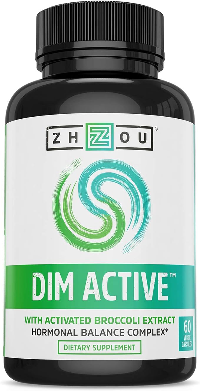 Zhou DIM Active | Menopause & Estrogen Metabolism Supplement with 250mg DIM Plus Broccoli Seed Extract & Bioperine | for Women & Men | 60 Capsules