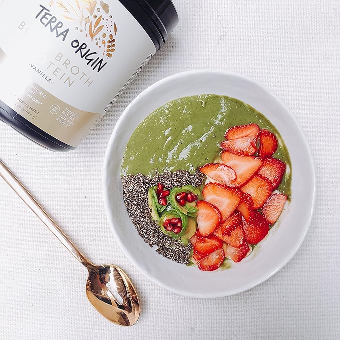 - BOOSTS ENERGY AND MUSCLE RECOVERY: Terra Origin Collagen Protein Bone Broth contains 1.5 grams of Medium Chain Triglycerides (MCTs) per serving, providing sustained energy for exercise and daily activities. The 17 grams of protein also support muscle strength, aid in recovery after workouts, and help you build lean muscle mass, making it perfect for active lifestyles.