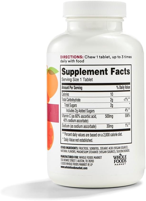 365 by Whole Foods Market, Vitamin C Chewable 500Mg, 100 Tablets