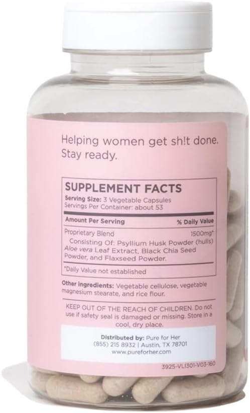 • HOW TO USE: Our premium anti-bloat fiber pill is highly effective when 2-3 capsules are taken about 30 minutes before meals, twice a day. This way, the fiber will have time to expand in your stomach and give you a "full" feeling and supports healthy weight management.* Our Pure for Her Fiber includes 160 capsules per bottle with a recommended serving size of 3 capsules per day.