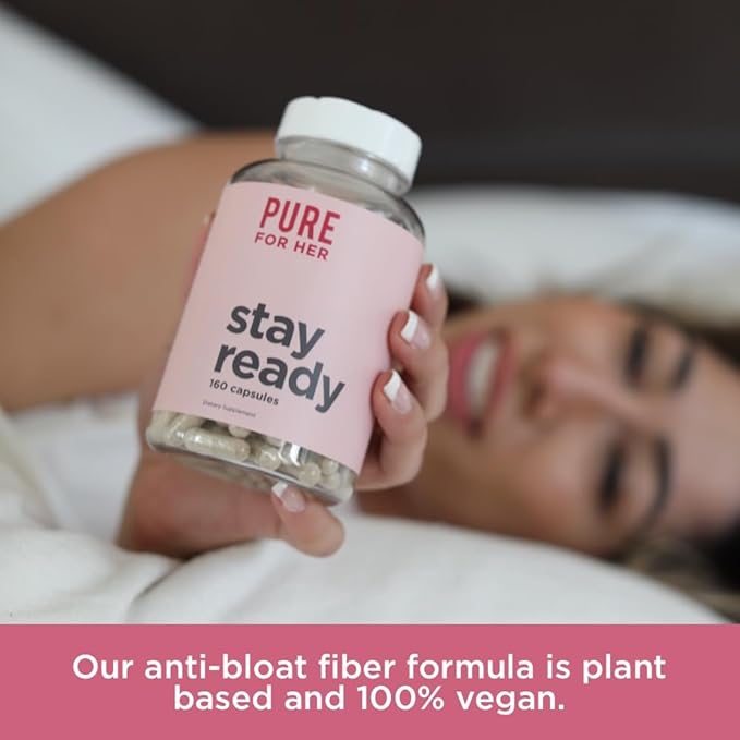 Pure for Her Vegan Stay Ready Fiber Supplement for Women | Bloat & Gas Relief, Supports Digestive Health, Regularity & Appetite Control | 160 Capsules