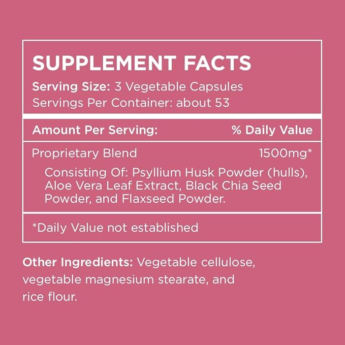 - PROPRIETARY BLEND OF FIBER: Take control of your digestive health with our proprietary blend of vegan ingredients: psyllium husk, aloe vera extract, chia seeds & flaxseed. Loaded with antioxidants, Omega-3 fatty acids, and fiber. Our leading fiber supplement also has 50% more fiber per capsule than competitors.*