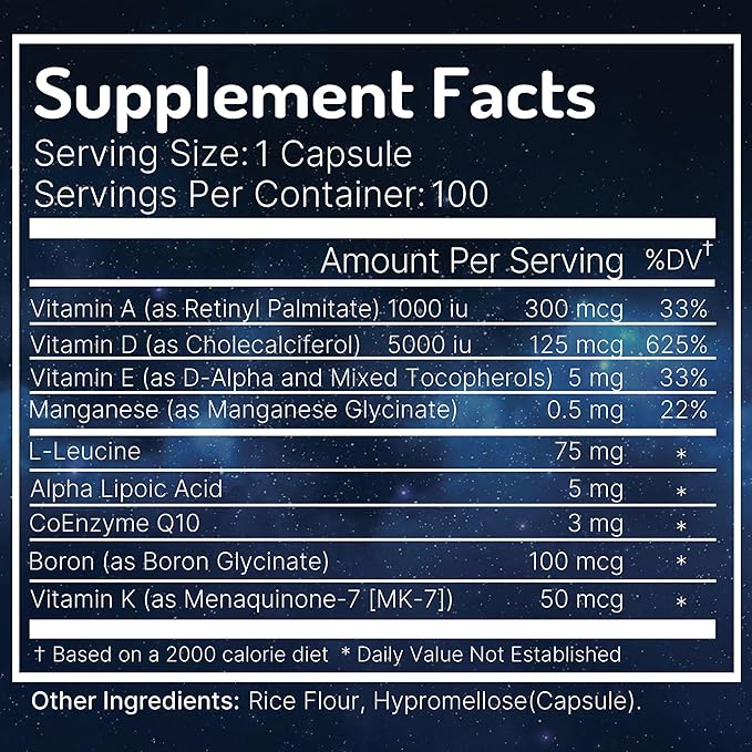 - Crafted formula with Vitamins A, D3, K2, Manganese and Boron