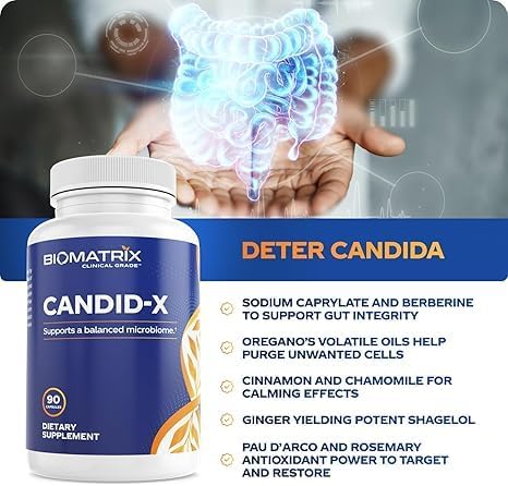 BioMatrix Candid-X Gut Cleanse with Berberine, Oregano, Sodium Caprylate, Chamomile, Ginger, PAU D'arco, Digestive Supplement for Men and Women | 90 Capsules