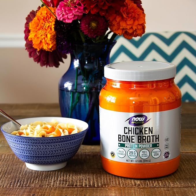 NOW Foods Sports Nutrition, Chicken Bone Broth Powder made with Premium-Quality Chicken Bone Extract, 1.2-Pound