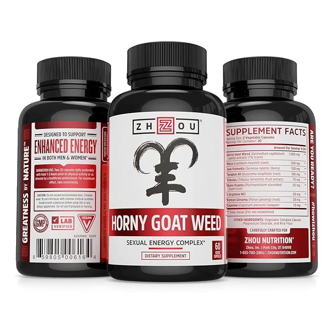 - PREMIUM FORMULA. Zhou Nutrition's Horny Goat Weed is formulated to bring you the youthful energy you've been longing for. Take consistently for best results