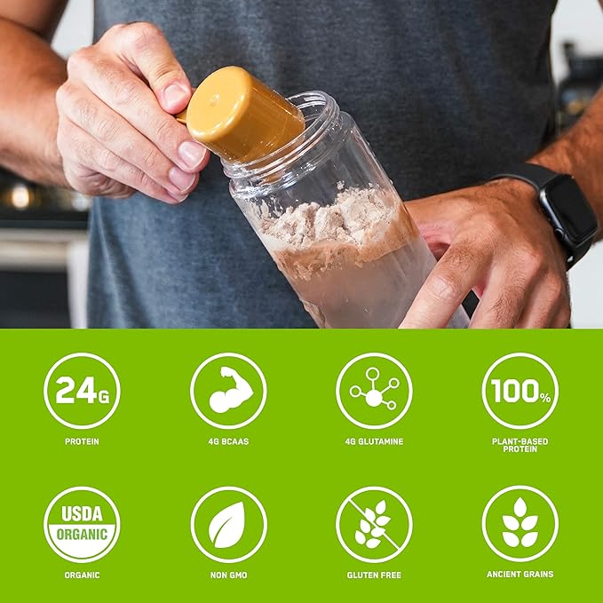 - 24 grams of complete, organic, plant-based protein sourced from a blend of Organic Pea, Organic Rice, and Organic Sacha Inchi proteins