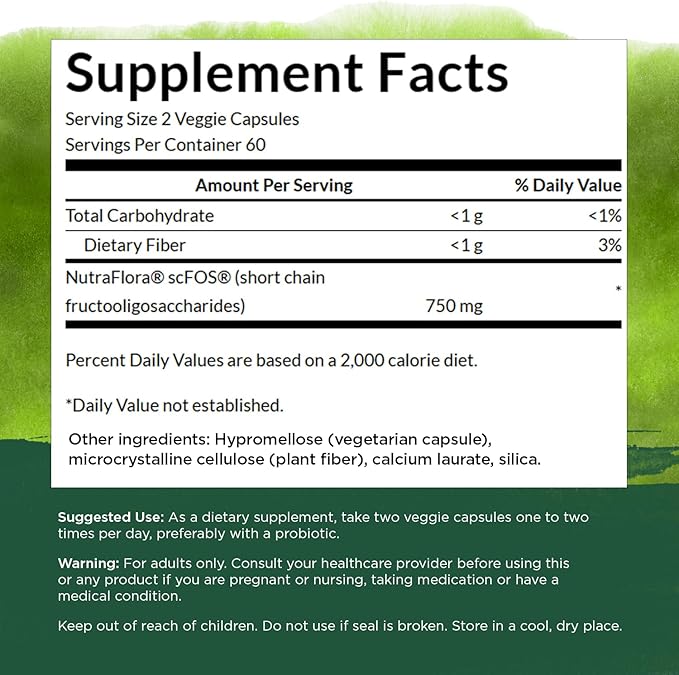 - NATURAL DIGESTIVE SUPPORT: Studies have shown that just one gram per day of NutraFlora may help to increase friendly flora by 500% in just four weeks! Each of Swanson's easy to swallow capsules delivers 750mg short-chain FOS for digestive wellness.