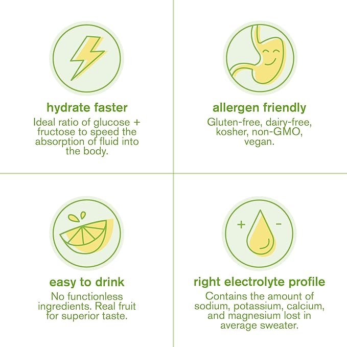 - LEMON + LIME: Vegan, plant based, verified non-GMO, gluten free, dairy free and Kosher. Only real fruit used for flavor and a light, refreshing taste. 50% less sugar and 2x the sodium of the leading sports electrolyte drinks*