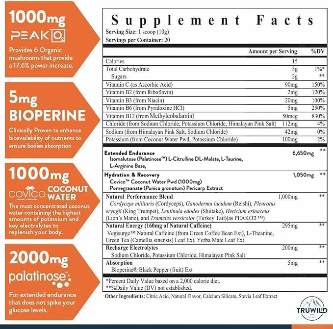 TruWild Motion All Natural Pre Workout Powder Drink Mix for Men & Women w/No Jitters or Crash – Whole Food Plant Based Vegan – Organic w/Electrolytes + BioPerine – 20 Servings (Coconut Raspberry)