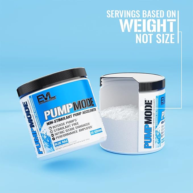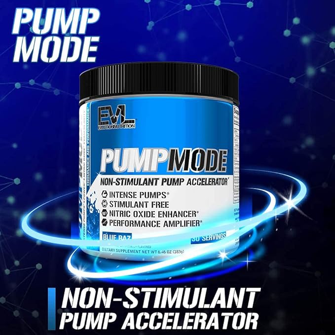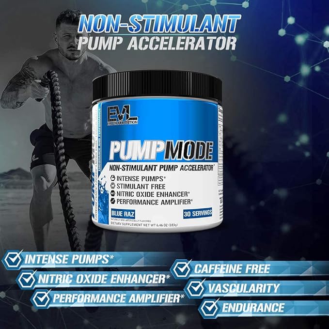 EVL PumpMode Nitric Oxide Supplement - Nitric Oxide Booster Pump Pre Workout Powder with Glycerol and Betaine for Muscle Recovery Growth and Endurance - Stim Free Pre Workout Drink (Blue Raz)