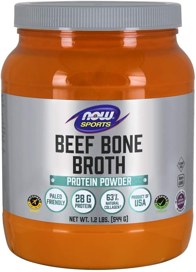 NOW Foods Sports Nutrition, Beef Bone Broth Powder made with Premium-Quality Beef Bone Extract , 1.2-Pound