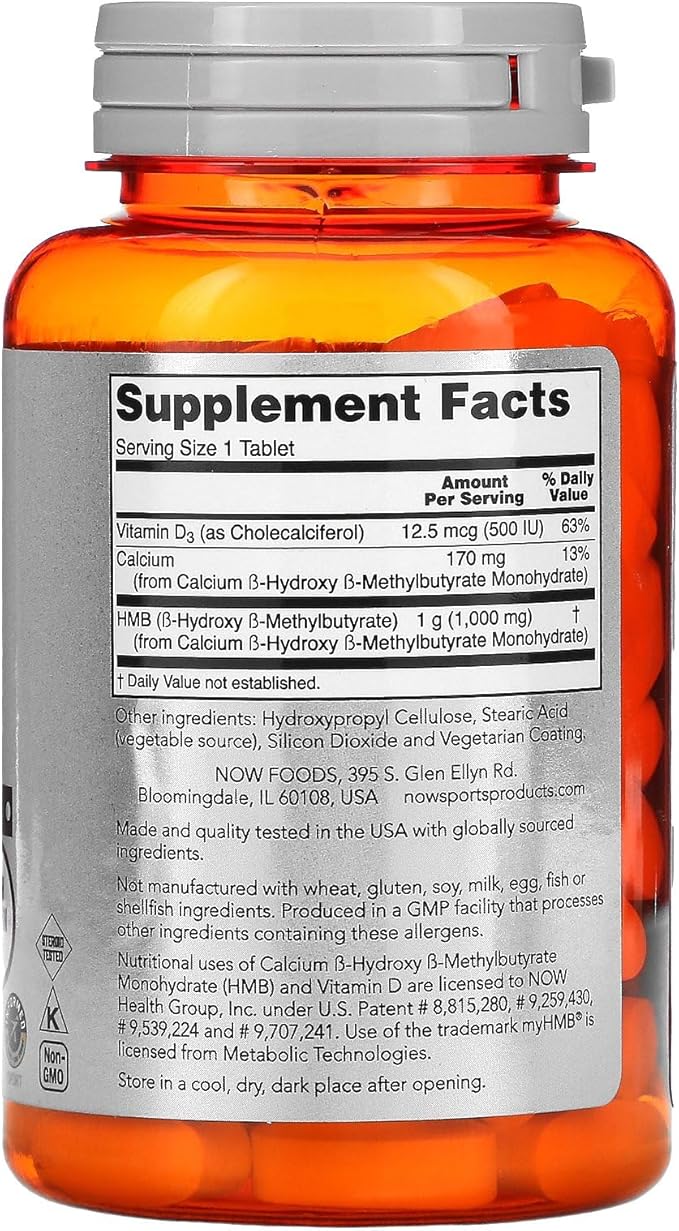 NOW Foods Sports Nutrition, HMB (β-Hydroxy β-Methylbutyrate), Double Strength 1,000 mg, 90 Tablets