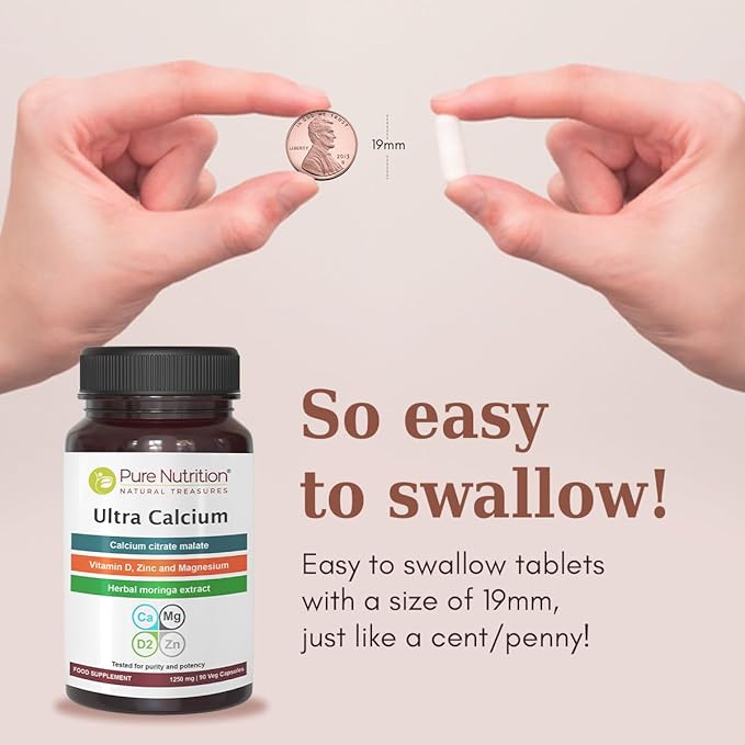- Every tablet of Pure Nutrition Ultra Calcium Citrate 1250mg provide 1000 mg Calcium Citrate Malate, 50 mg Moringa, 50 mg Magnesium oxide and 400 IU Vitamin D3 for bones, joints and overall wellbeing