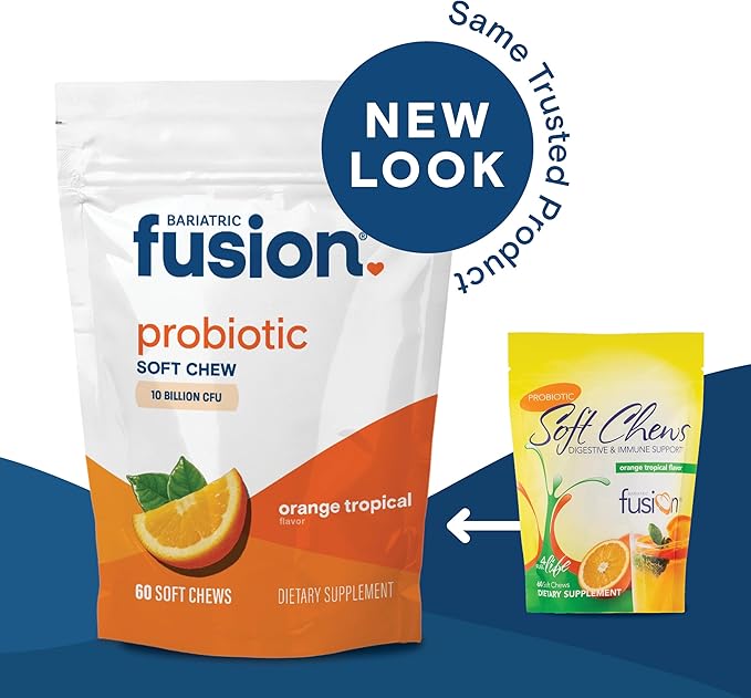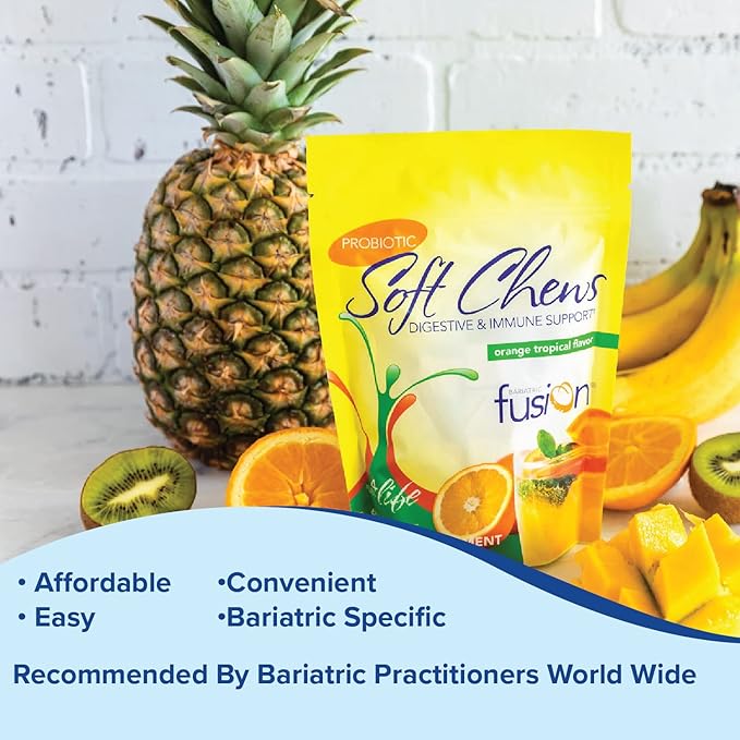 Bariatric Fusion Bariatric Probiotic Soft Chews | Orange Tropical Flavor Chewy Bariatric Vitamin | Bacillus Coagulans 10 Billion CFU Chewable Probiotic | Support Digestive & Immune Health | 60 Count