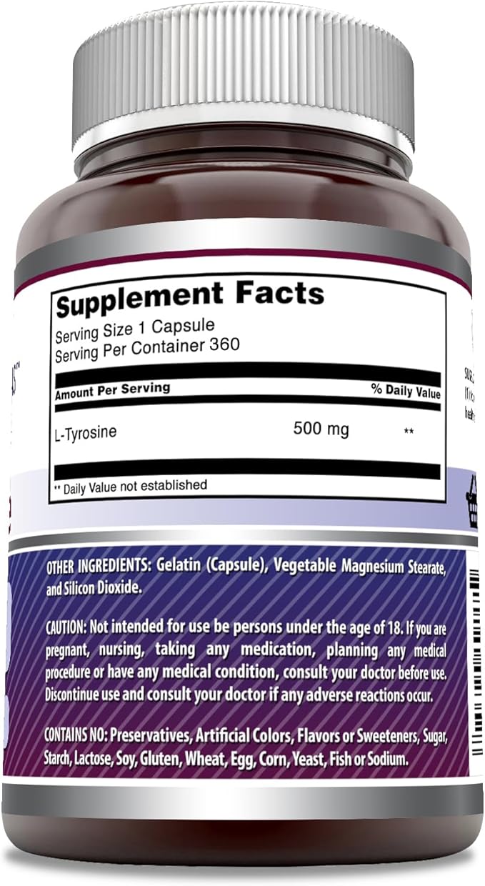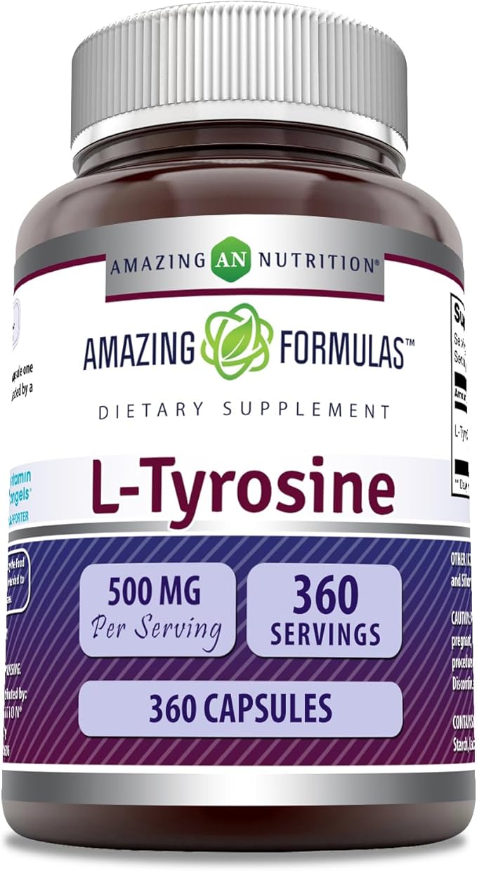 Amazing Formulas L-Tyrosine Supplement | 500 Mg Per Serving | 360 Capsules Per Serving | Non-GMO | Gluten-Free | Made in USA
